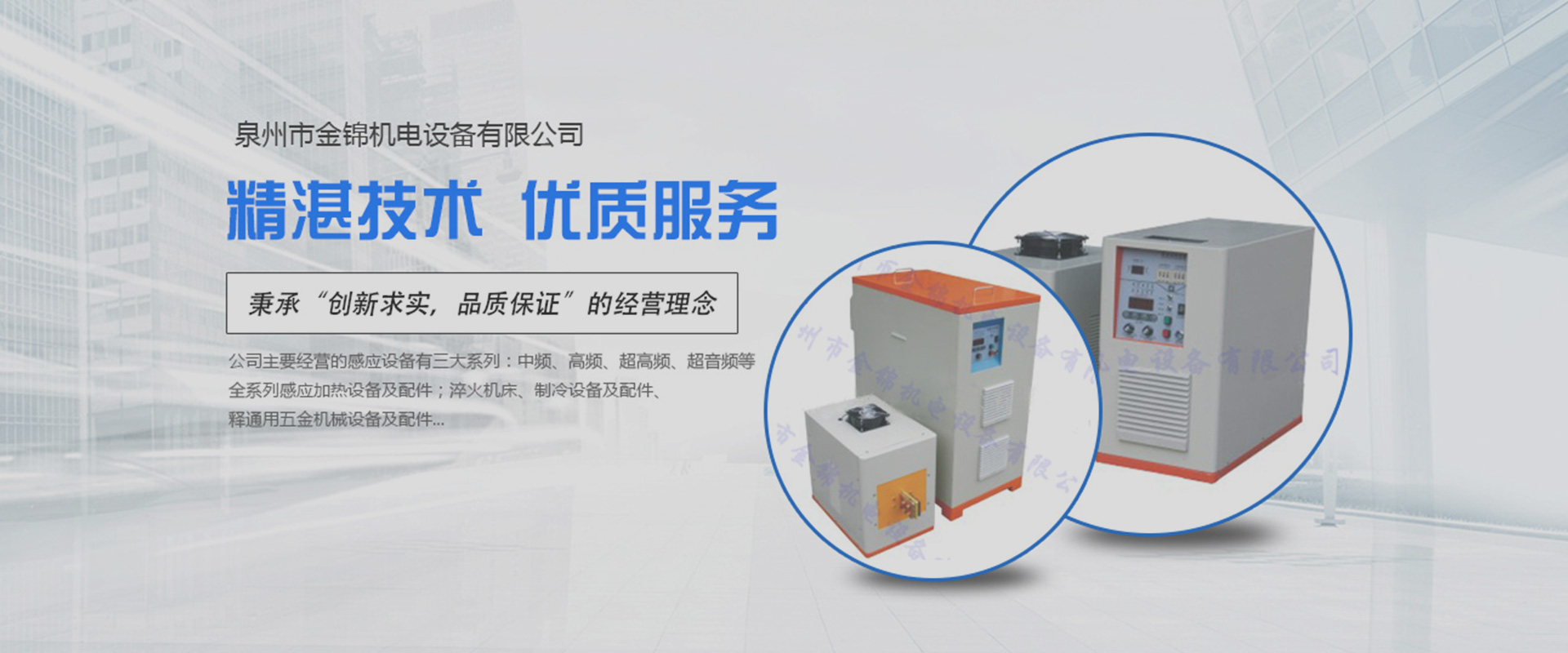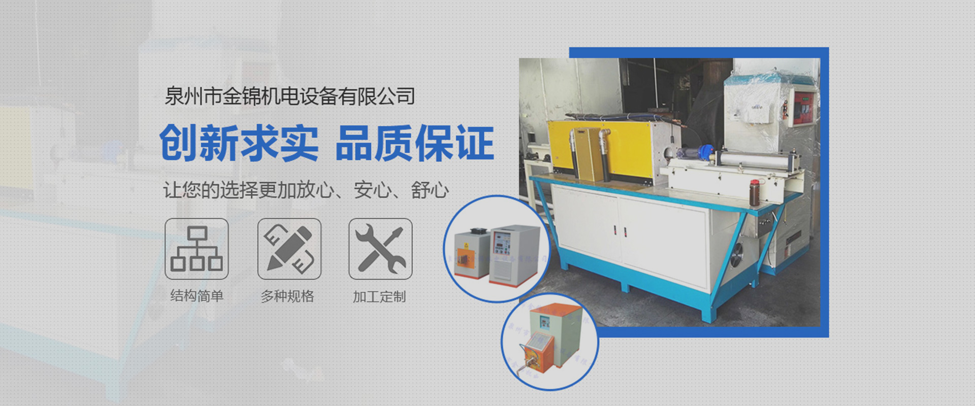 ??泉州市金錦機(jī)電設(shè)備有限公司,是一家專(zhuān)業(yè)生產(chǎn)銷(xiāo)售感應(yīng)加熱設(shè)備與優(yōu)化解決方案的高新技術(shù)企業(yè)。公司自2006年成立以來(lái),以精湛的技術(shù)、優(yōu)質(zhì)的服務(wù)、優(yōu)良的產(chǎn)品贏得了廣大用戶(hù)的認(rèn)可和信賴(lài)。產(chǎn)品銷(xiāo)售于全國(guó)各地。公司一貫堅(jiān)持“立足本職,敢于承擔(dān)”的工作作風(fēng),秉承“創(chuàng)新求實(shí),品質(zhì)保證”的經(jīng)營(yíng)理念,在感應(yīng)加熱行業(yè)中不斷發(fā)光發(fā)熱…